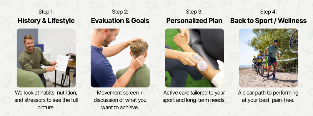 We use movement testing, hands-on muscle work, adjustments, and targeted rehab to rebuild confidence and keep injuries from coming back.